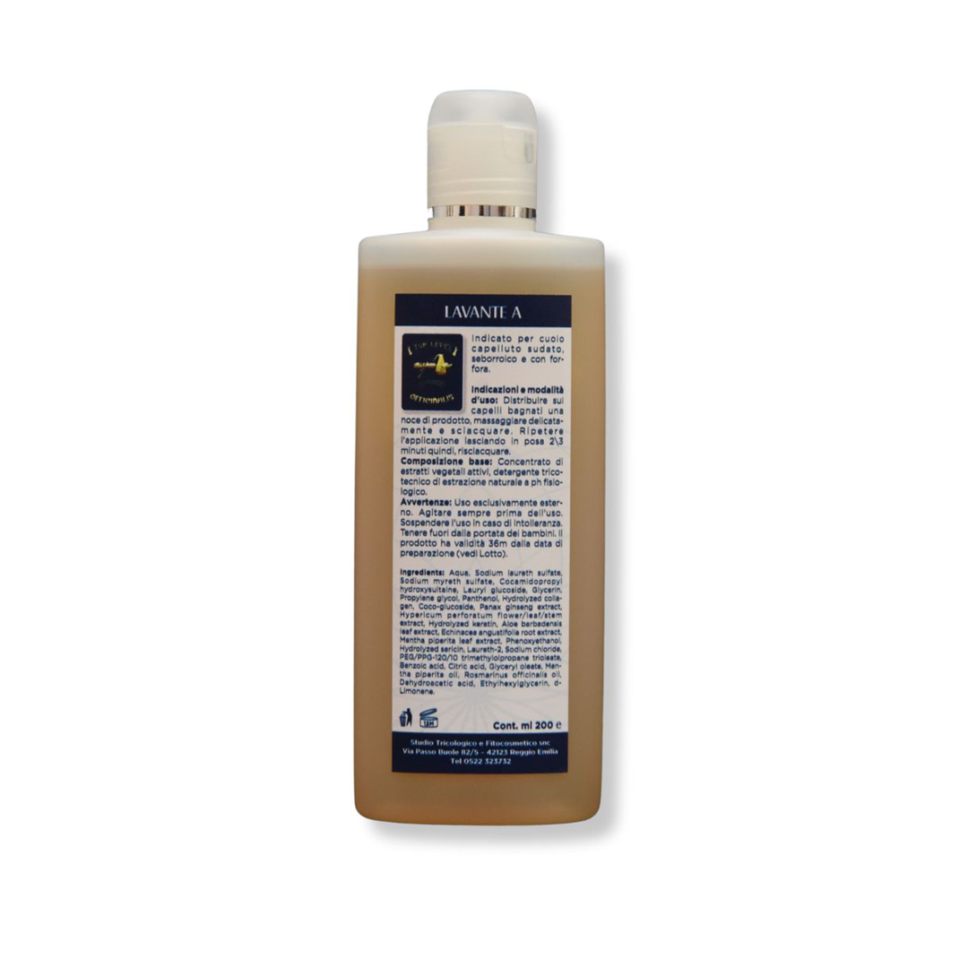 I componenti attivi contenuti nel lavante “A” permettono una profonda azione detergente e sebo-regolatrice. L’uso quotidiano permetterà un ripristino delle funzioni fisiologiche, regolarizzando l’untuosità dei capelli e del cuoio capelluto.